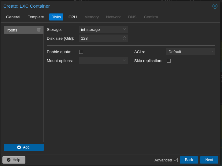 rootfs: int-storage:vm-116-disk-0,size=128G